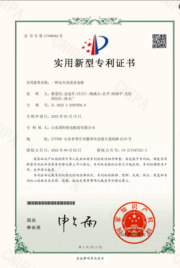 山東國恒機(jī)電配套有限公司簡      介 山東國恒機(jī)電配套有限公司是一家集新能源、高科技、智能化生產(chǎn)研發(fā)、制造、銷售為一體的綜合性現(xiàn)代化高新技術(shù)企業(yè),公司座落在魯班故里、墨子之鄉(xiāng)滕州,公司始建于2005年,注冊資本1億元,擁有各類中、高級專業(yè)技術(shù)人員100余名。主營業(yè)務(wù)涉及高科技智能電力裝備、新能源儲備輸送,220kv及以下輸變電工程勘察設(shè)計、制造、銷售、安裝、售電和智能充電樁能效運(yùn)維,并從事生產(chǎn)制造交直流充電樁設(shè)備、成套開關(guān)設(shè)備、各型號高低壓開關(guān)柜、箱式變電站等電氣設(shè)備,是棗莊地區(qū)唯一一家國資入股的新能源高端品牌企業(yè)。公司擁有獨(dú)立… 【查看更多】